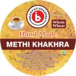 Savor the aromatic taste of fresh fenugreek leaves in our Methi Khakhra. Lightly spiced and perfectly crunchy, it’s a healthy snack that pairs beautifully with tea or chutney. Made with care at The Great Bhagvati Bakery.